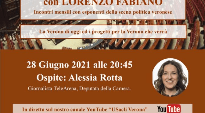 Lunedì 28 giugno 2021, alle 20:45, il terzo incontro tenuto da Lorenzo Fabiano con gli esponenti della scena politica veronese. Ospite della terza puntata…Alessia Rotta, giornalista di TeleArena e Deputata della Camera.