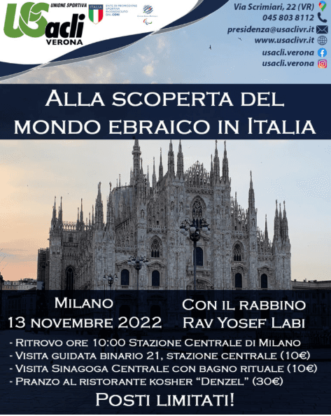 USacli di Verona organizza tre uscite guidate per scoprire la storia e le aree ebraiche di Milano, Roma e Firenze. Il rabbino Rav Yosef Labi sarà la guida di tutte le visite.
