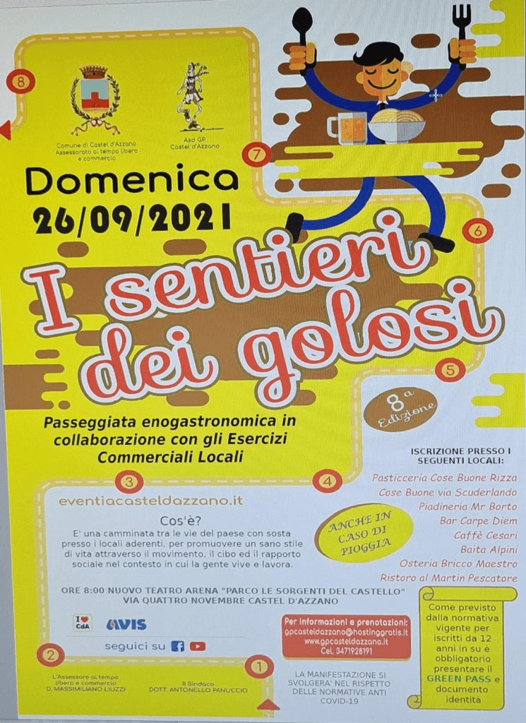 Per ulteriori informazioni e per prenotazioni contattare il numero 3471928191 oppure la mail gpcasteldazzano@hostinggratis.it