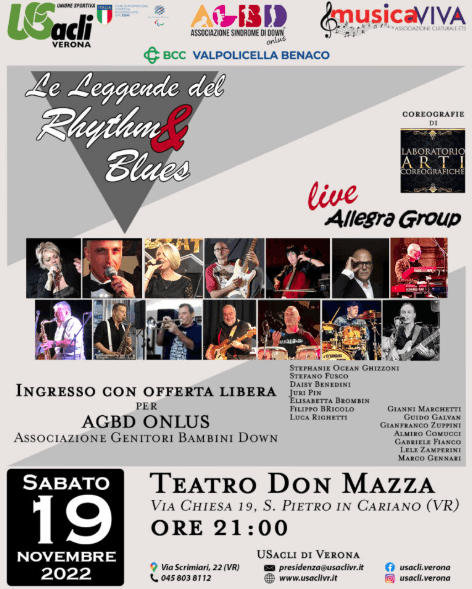 Non dimenticate l’appuntamento con “Le Leggende del Rhythm & Blues”, sabato 19 novembre, ore 21:00 a San Pietro in Cariano, Teatro Don Mazza, via Chiesa 19.