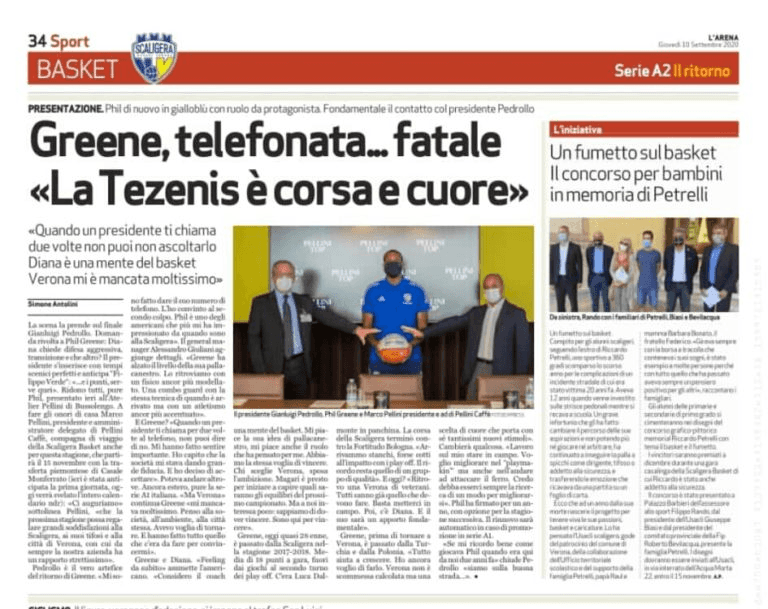 Di seguito troverete la foto della conferenza stampa di ieri 09/09/20, l’articolo dell’Arena di oggi 10/09/20, le parole della famiglia Petrelli e l’intervista a Filippo Rando, Assessore allo Sport e Tempo Libero del comune di Verona.
