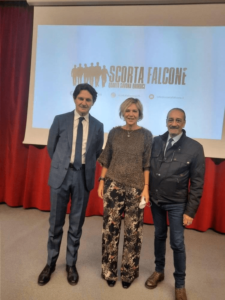 “Loro sono stati gli angeli custodi del giudice Falcone. Luciano Tirindelli e Giuseppe Sammarco scampati alla strage del 23 maggio 1992 per un cambio turno. Hanno creato l ‘associazione Scorta Falcone Q S15. Questa mattina all’istituto Alle Stimate per un’intensa, tragica e a tratti commovente pagina di storia.”