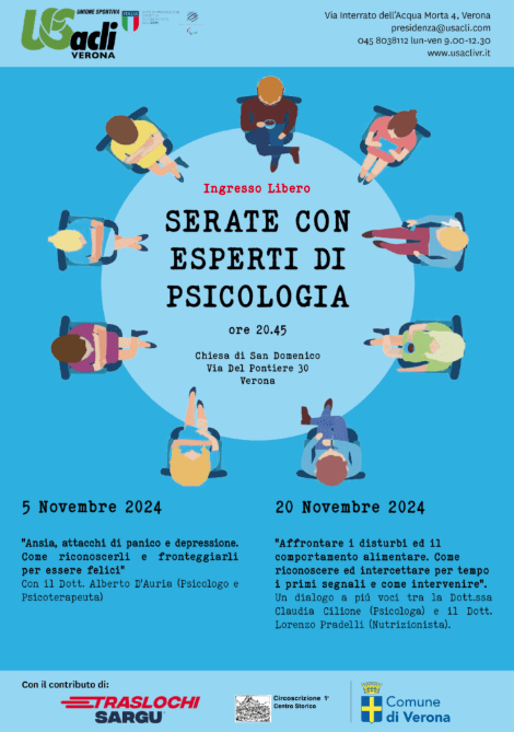 La bellissima chiesa di San Domenico in via del Pontiere 30, ha fatto da cornice alla serata culturale organizzata da USacli Di Verona che ha avuto come tema “Ansia, attacchi di panico e depressone, come riconoscerli e fronteggiarli per essere felici”, svolta dallo psicologo e psicoterapeuta Alberto D’Auria e curata dal presidente Giuseppe Biasi, che hanno redazionato un discreto pubblico.